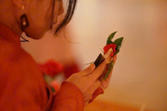 Trong thời gian diễn ra sự kiện, khách tham quan có cơ hội hiểu rõ hơn về hành trình cưới hỏi trong suốt 100 năm qua, được học về tục têm trầu cánh phượng. ẢNH: BTC