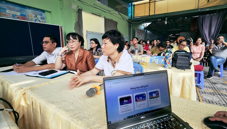 Giáo viên Trường THCS Ba Đình, phường Chợ Quán, TP.HCM tập huấn sử dụng AI trong công tác giảng dạy - Ảnh: NHƯ HÙNG