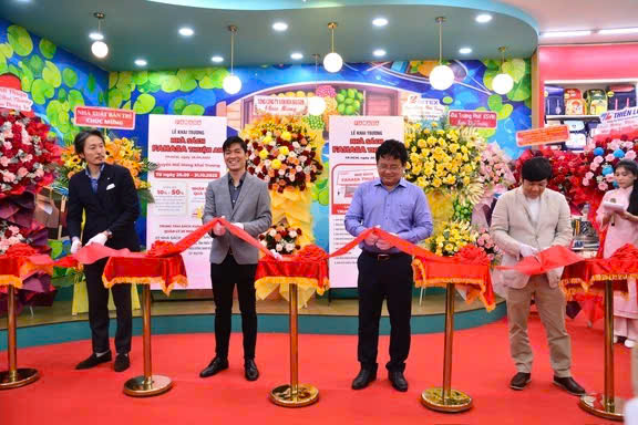 Quyền Tổng giám đốc Fahasa Phạm Nam Thắng (thứ hai từ trái sang) cùng đối tác và khách mời cắt băng khánh thành nhà sách Fahasa Thuận An